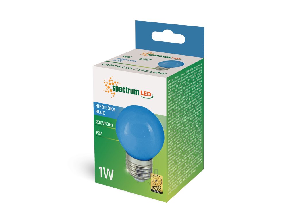 LED BALL G45 E-27 230V 1W PCV SPECTRUM - žltá, červená, modrá, zelená led žiarovka E27