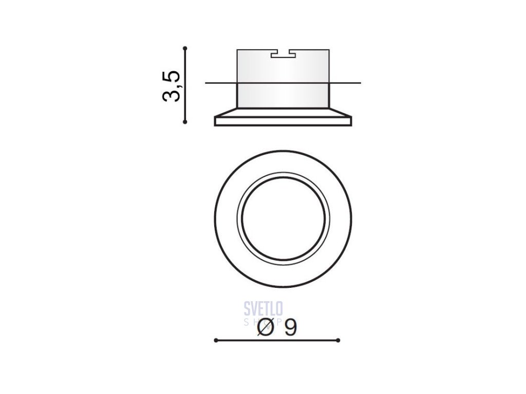 Hliníkové vstavané zapustené svietidlo. Priemer výrezu je 75 mm. Svetelný zdroj nie je súčasťou balenia