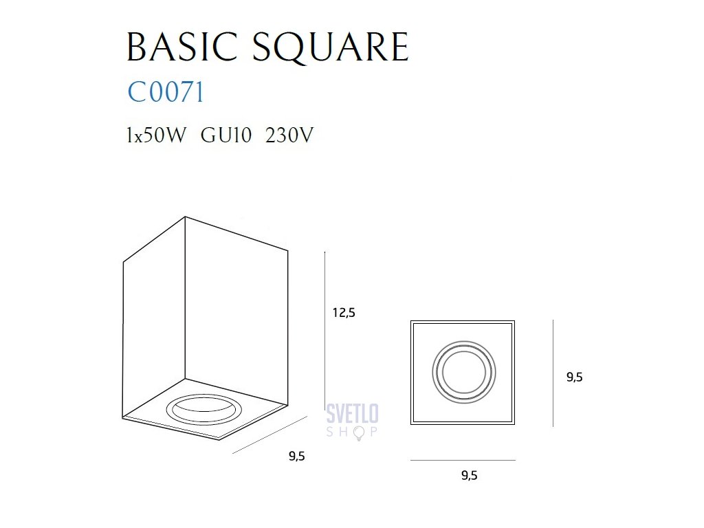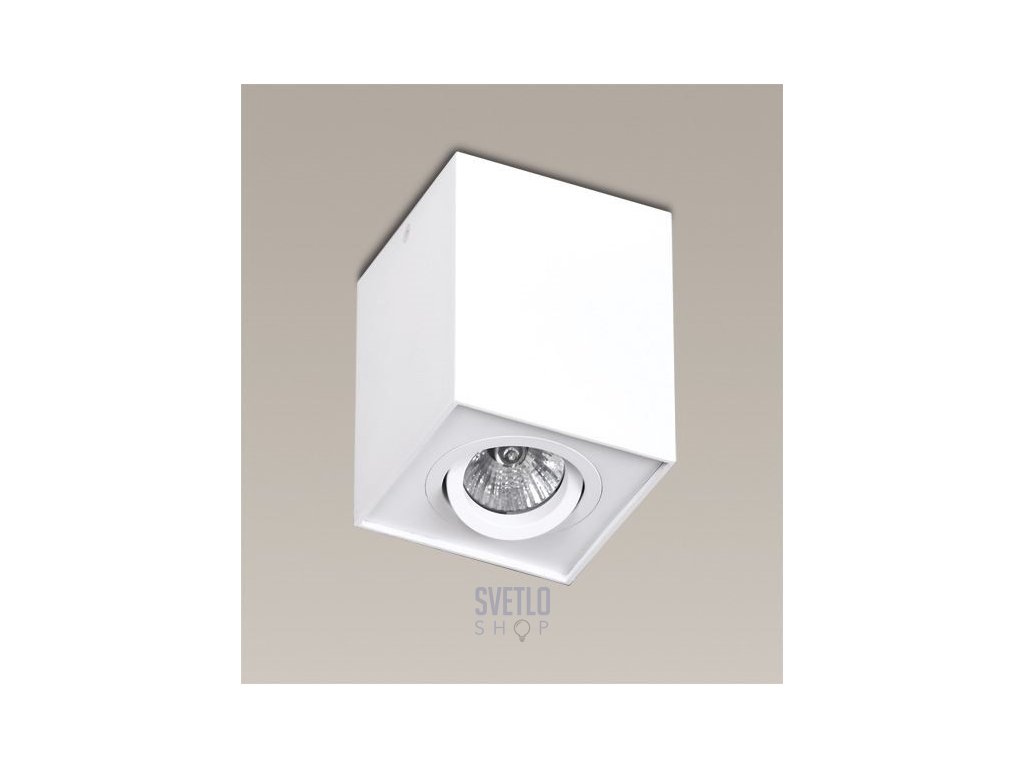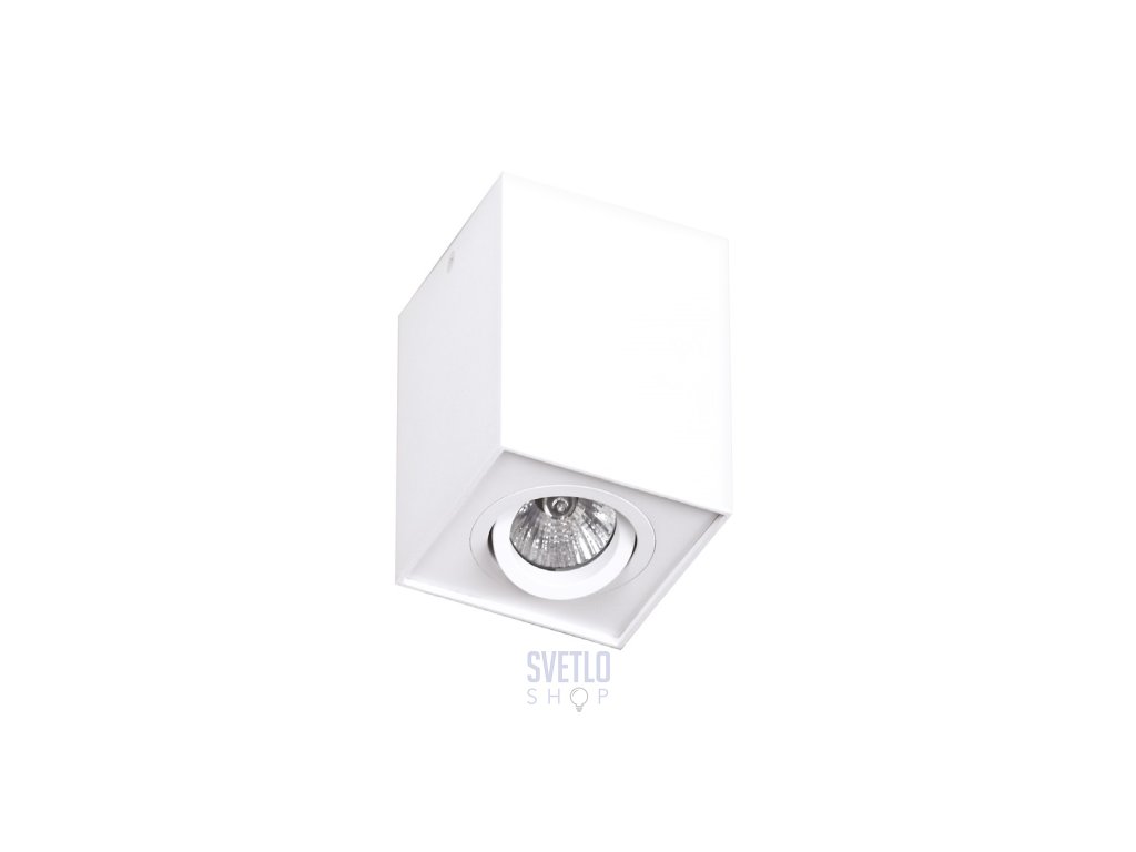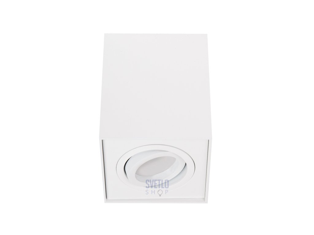 Moderné, minimalistické bodové štvorcové prisadené svietidlo v hliníkovom, bielom a čiernom prevedení. Hodí sa do moderných interiérov. Žiarovky nie sú súčasťou svietidla. Bodovka má možnosť naklápania žiarovky. Do svietidlá pasuje žiarovka gu10, ktorá može byť samozrejme aj led.