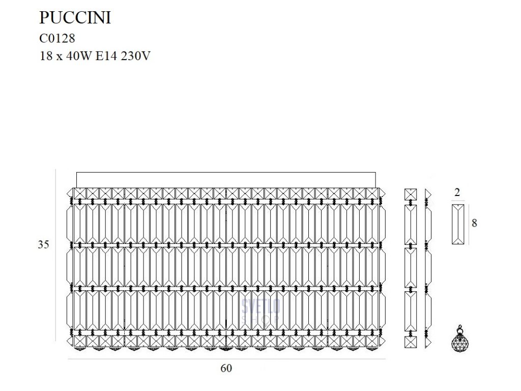 Napájanie: 18 x 40W E14 230V H: 35 cm, Ø: 60 cm Farba: chróm Materiál: kov/sklo Žiarovky nie sú súčasťou baleniaDodatočné parametre