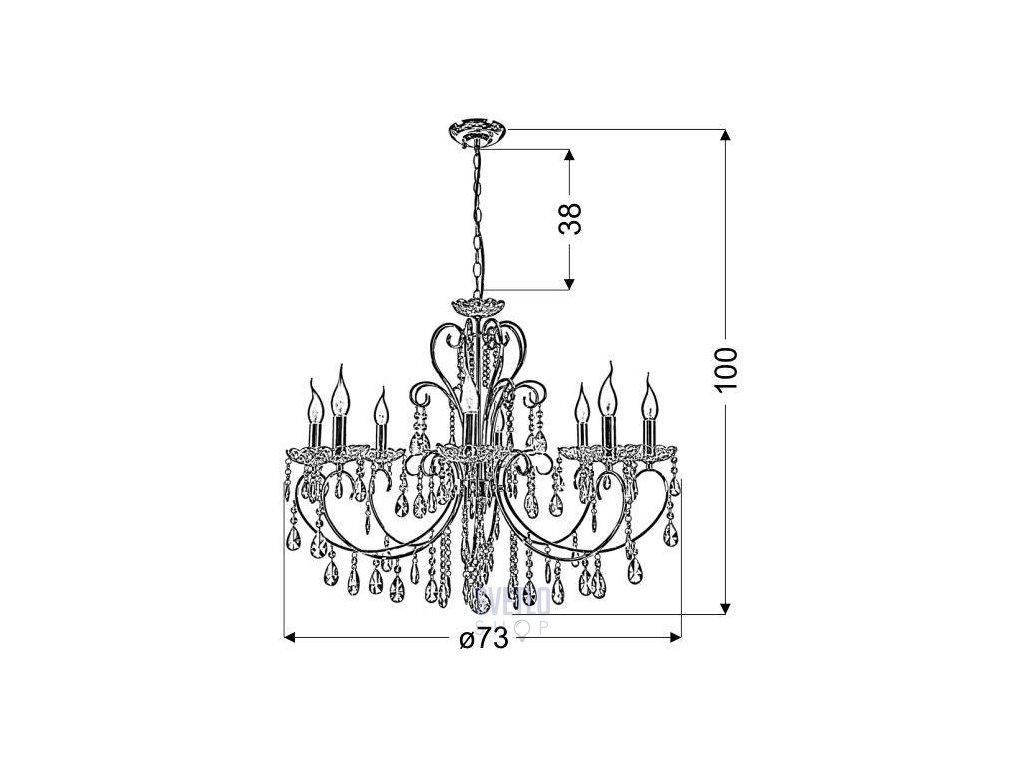 Stropné svietidlo má osem svetelných bodov so základňou E14 a maximálnym výkonom 40 W.
