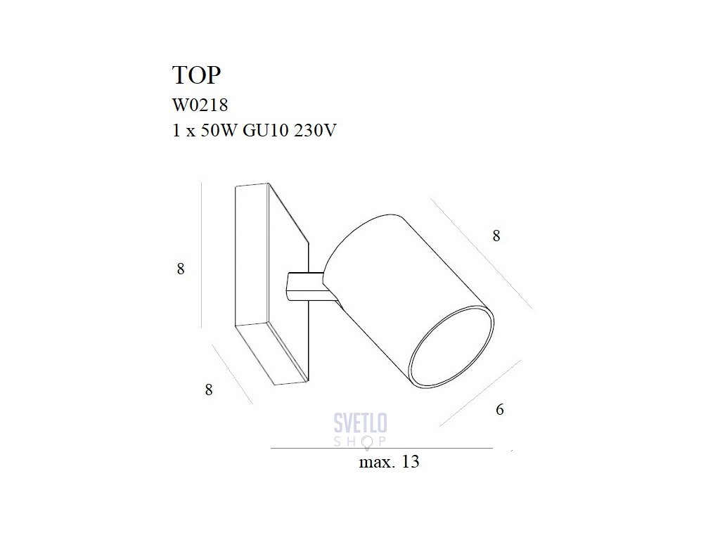 Napájanie: 1 x 50W GU10 230V W: 8 cm, D: 13 cm, H: 8 cm Farba:biela Materiál: kov Žiarovky nie sú súčasťou baleniaDodatočné parametre