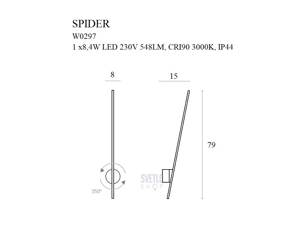 Napájanie: 1 x 8,4W LED 230V 548LM, CRI90 3000K, IP44 W: 8,0 cm, D: 15 cm, H: 79 cm Farba: zlatá Materiál: kov/akryl LED je súčasťou balenia 3000KDodatočné parametre