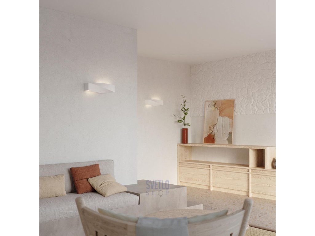 Svetlo v lampe sa šíri hore a dole a biely matný keramický kryt v kombinácii s osvetleným povrchom vytvára krásnu vizuálnu kompozíciu. Nástenná lampa bude skvele vyzerať v moderných interiéroch, zapôsobí svojou ľahkosťou a elegantným tvarom.