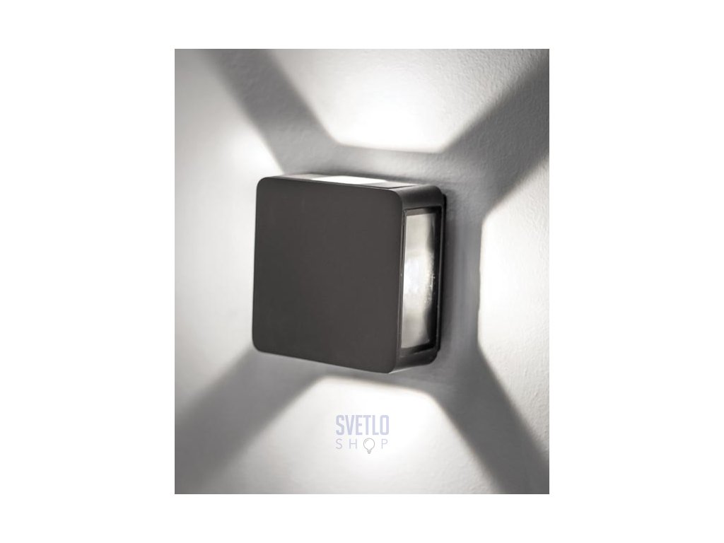 Vonkajšie nástenné svietidlo s integrovanou LED, vyrobené z hliníka v antracitovej farbe a difúzora z tvrdeného skla. - integrovaný LED zdroj - Rozmery (v/š/d): 11cm /11cm /6cmDodatočné parametre