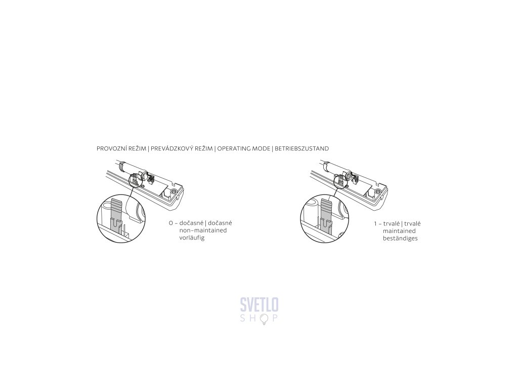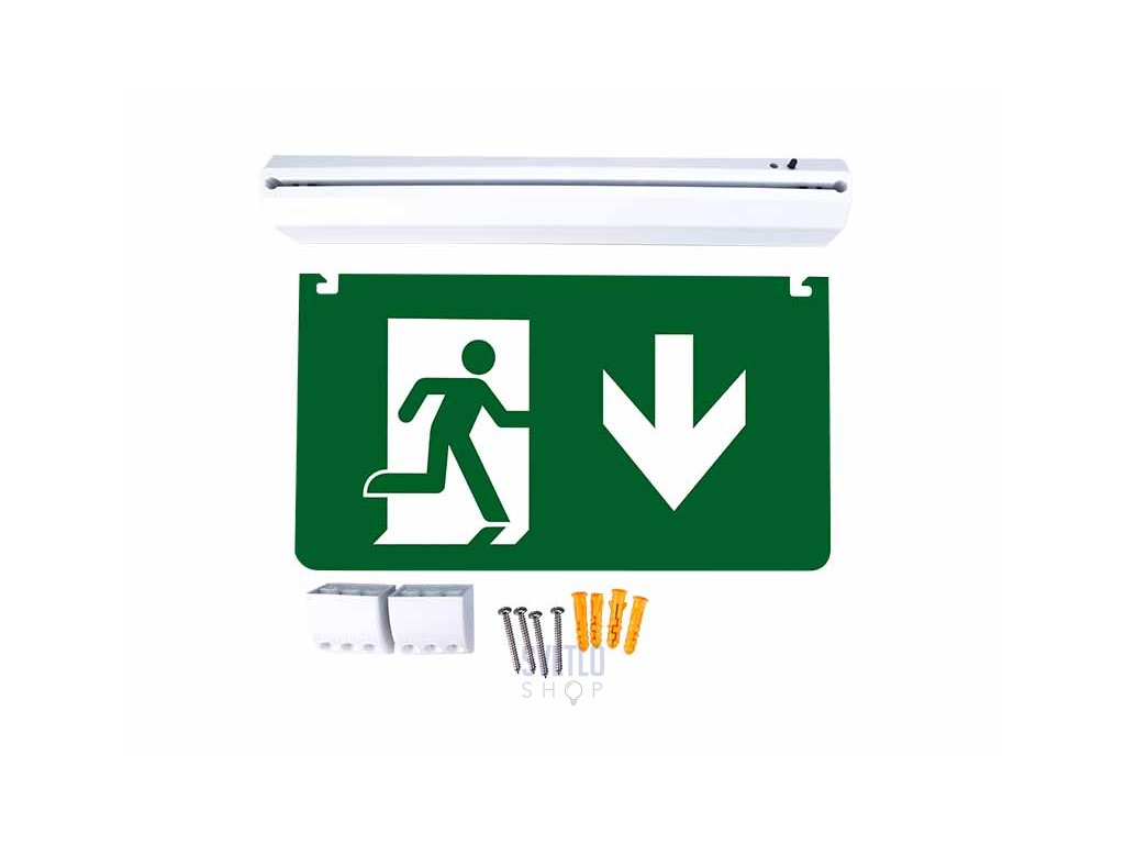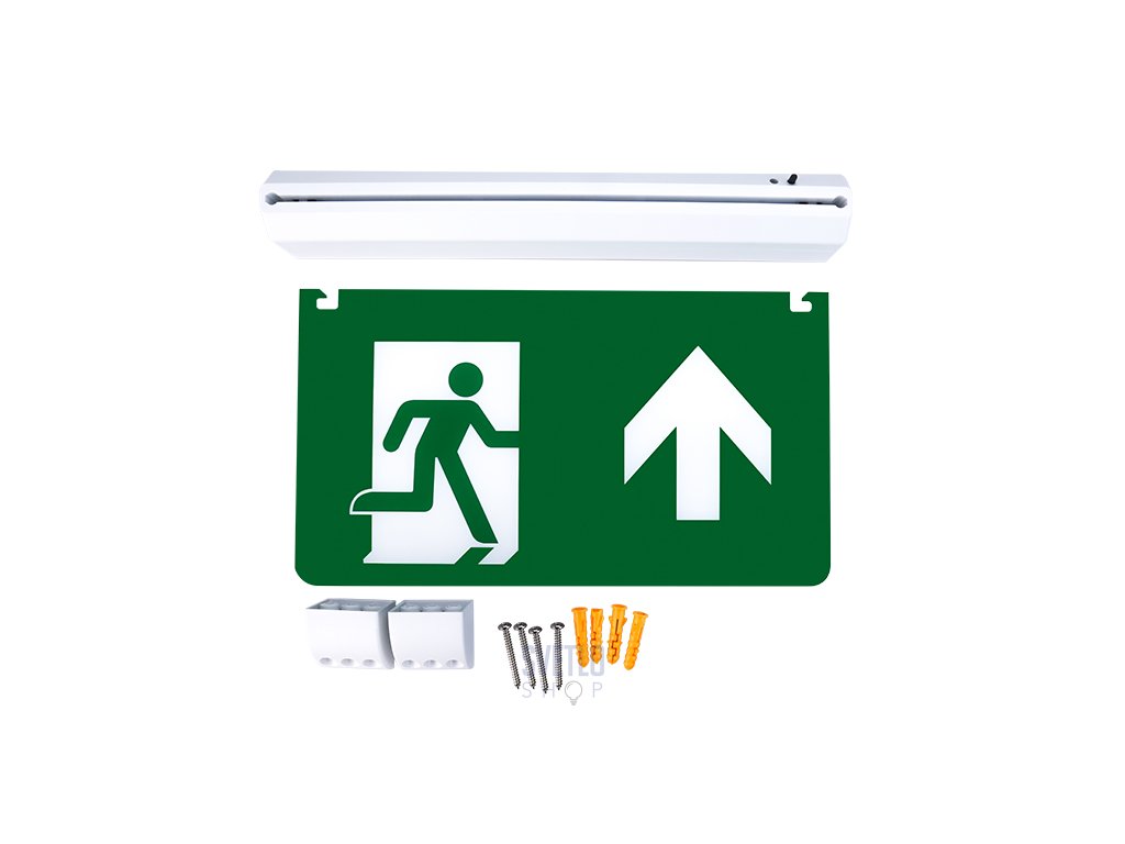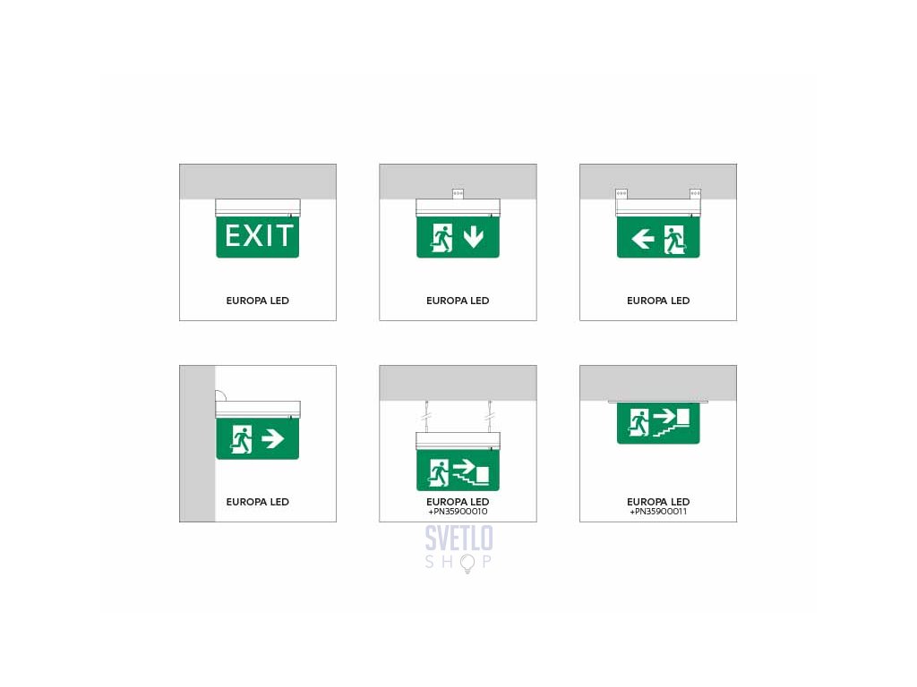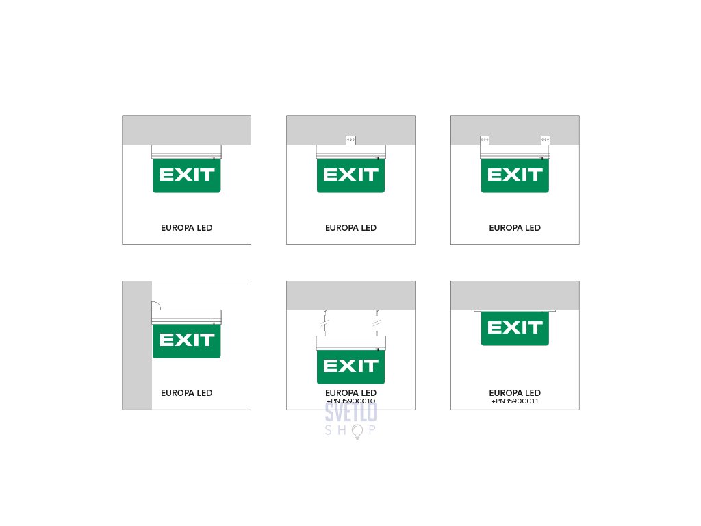 V cene je zahrnuté kompletné svietidlo s piktogramom a úchytkami - možné spôsoby montáže nájdete na obrázku.