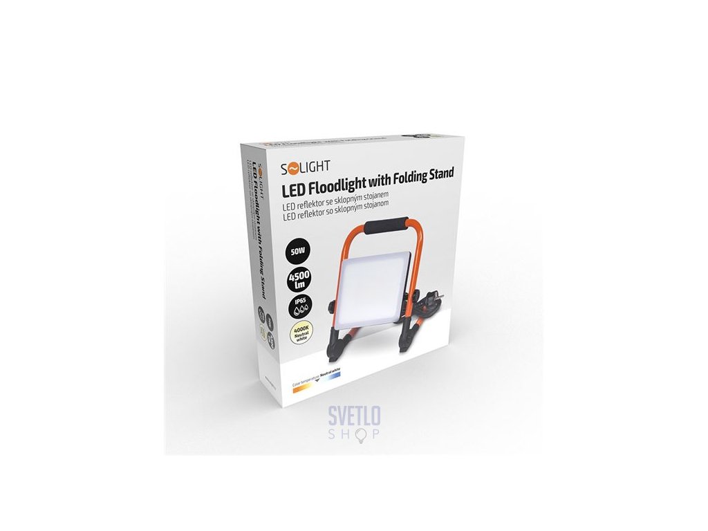 Solight LED reflektor so sklopným stojanom, 50W, 4500lm, 4000K, kábel so zástrčkou, IP65
