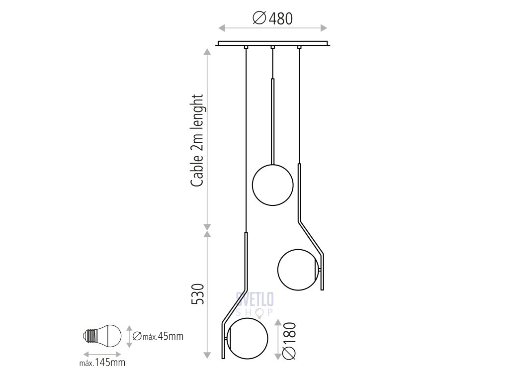 Maui 8163/3 Závesná lampa Opal/Black Matt, LED E27 3x15W, CL.I, (E27 max. Ø45 mm)Dodatočné parametre