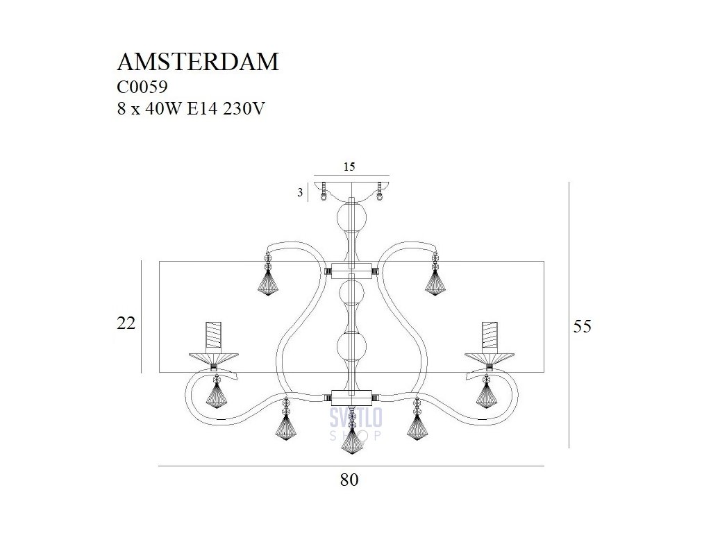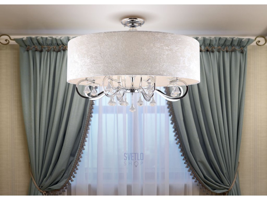 Sofistikované svietidlá Amsterdam spájajú formu klasického lustra so zaujímavým veľkým plyšovým tienidlom v ecru. Materiál s charakteristickou textúrou dodáva rámu nevšedný vzhľad. Auru elegancie a luxusu umocňujú lesklé, pochrómované kovové ramená viditeľné pod tienidlom a na nich zavesené sklenené kryštály, ktoré vrhajú rozkošné odlesky. Rodina obsahuje závesné svietidlo a stropné svietidlo dostupné v dvoch veľkostiach. Amsterdam bude skvelým doplnkom interiéru v štýle Hamptons alebo glamour a iných sofistikovaných aranžmánov. Dokonale ozdobí útulnú spálňu a obývačku plnú jemných tvarov a textúr.