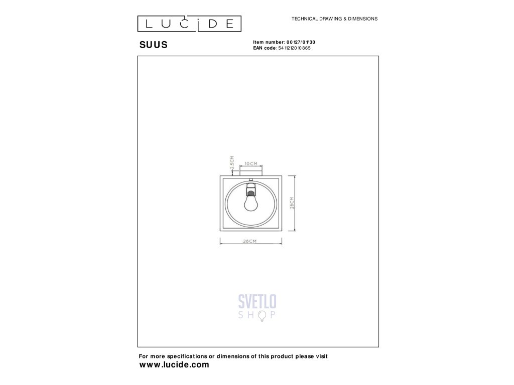 - Spotreba energie: 1x40W / 230V / Stmievateľný (nie je súčasťou dodávky)