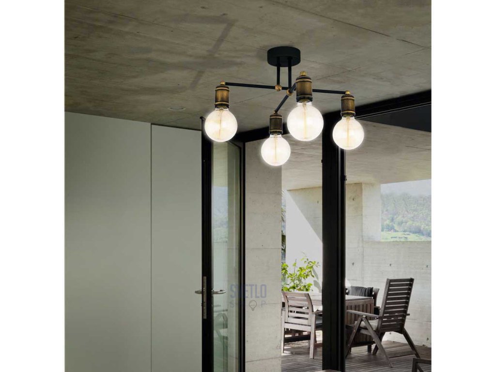 Stropné svietidlo Retro od spoločnosti TK Lighting. Svietidlo je z kovu vo vintage dizajne s detailami v patine. Lampa neobsahuje svetelný zdroj. LED žiarovky si môžete kúpiť v našom eshope. My odporúčame filament žiarovky pre lepší vizuálny dojem.
