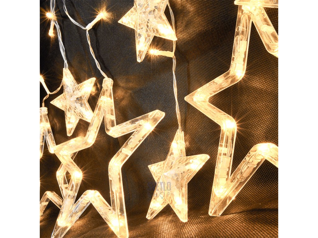Solight LED vonkajší vianočný záves, hviezdy, šírka 3m, 123LED, IP44 3xAA, teplá biela