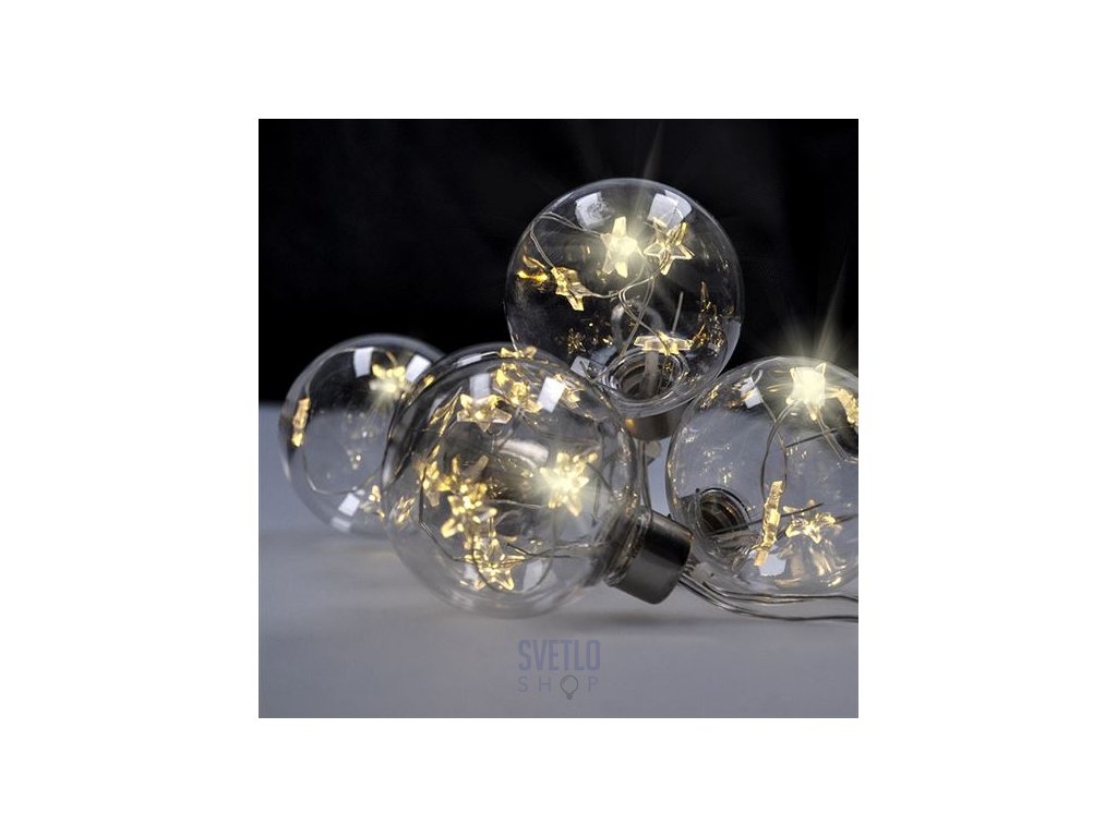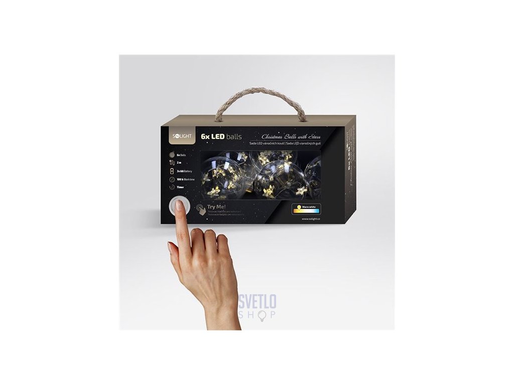 Solight sada LED vianočných gulí s hviezdami, veľ. 8cm, 6ks, 30LED, časovač, tester, 3xAA