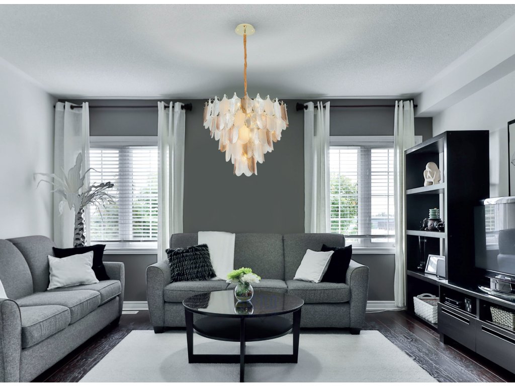 Závesné svietidlá zo série Arwena budú dokonalým príslušenstvom do každej obývacej izby, jedálne alebo dokonca spálne. Určite ich ocenia ľudia, ktorí majú radi bohaté interiérové doplnky a atmosféru padajúceho jesenného lístia. Vďaka tomu, že tieto dekorácie sú zložené zo zlato-krémových listov, dodajú každej miestnosti hrejivú atmosféru. Svietidlá sú dostupné v dvoch veľkostiach.