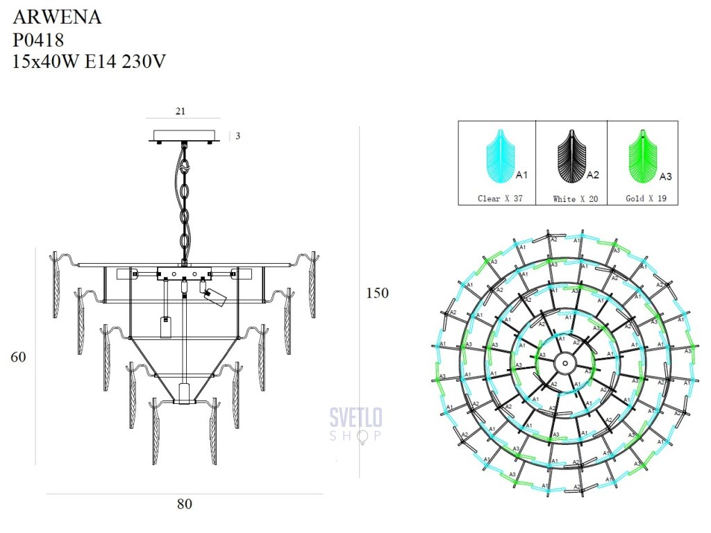 Svietidlo Arwena je elegantné a sofistikované. Dokonale sa hodí do elegantných, ale aj klasických priestorov. Lampa je napájaná zdrojom LED.