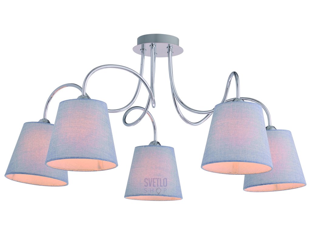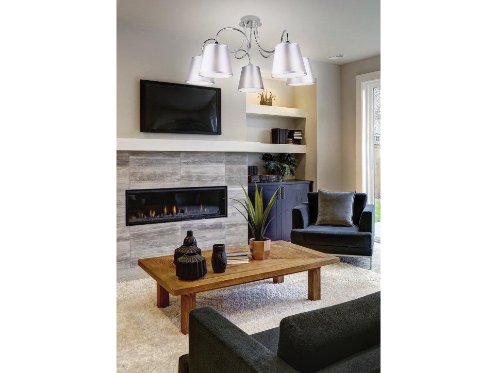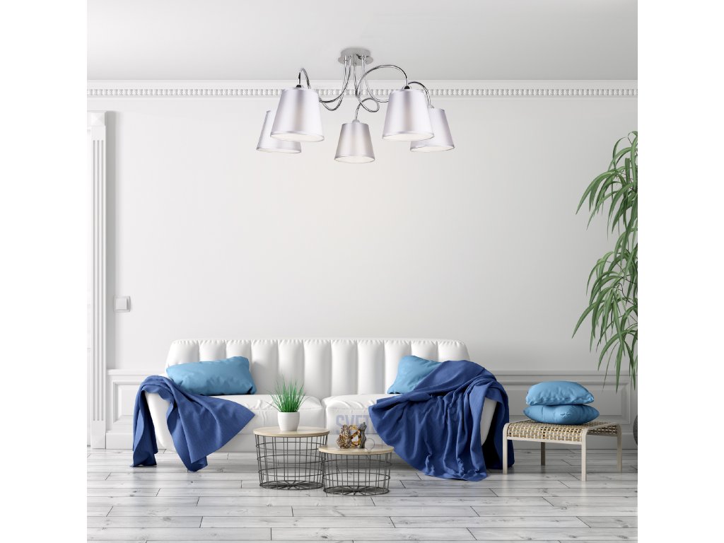 Závesné svietidlo 5X40W E14 Chrome - Materiál: oceľová základňa, tieň - tkanina/PCV - Rozmery v cm (v/š/h): 36x70x70 - Balenie NEOBSAHUJE žiarovku!Dodatočné parametre