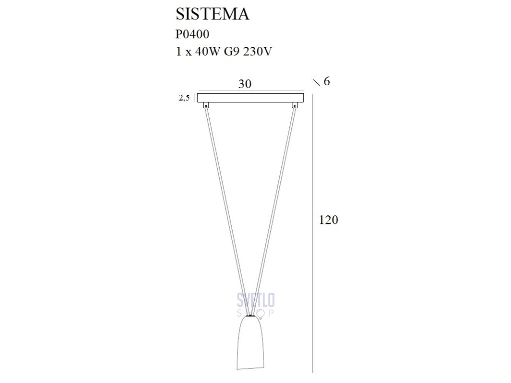 Napájanie: 1 x 40W G9 230V H: max 120 cm, Ø: 8 cm Podhlavník/strieška: W: 30 cm, D: 6 cm, h: 2,5 cm Farba: čierna Materiál: kov Žiarovky nie sú súčasťou baleniaDodatočné parametre