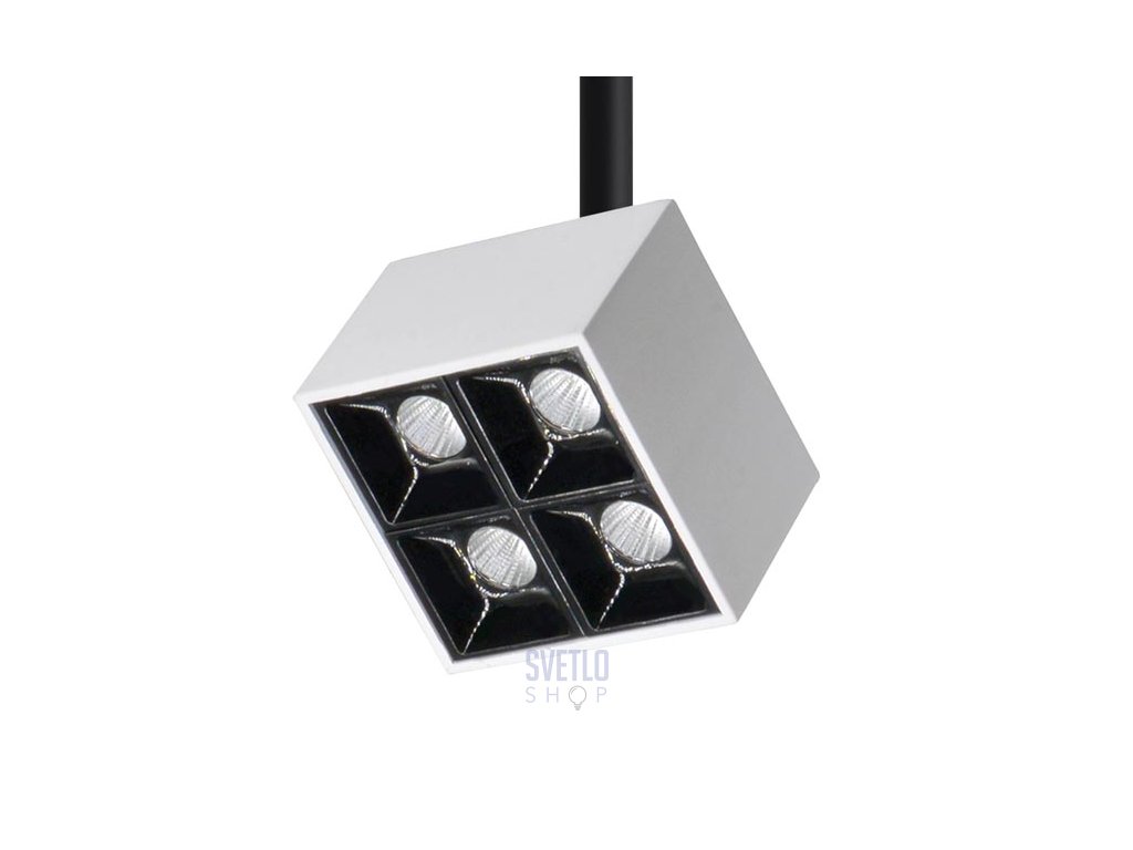 Závesné interiérové svietidlo, nastaviteľný spot, kovová konštrukcia z hliníka v pieskovej bielej/čiernej farbe.